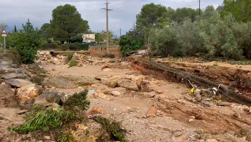 📢 L’alcalde de Roquetes, Ivan Garcia, mostra els danys històrics dels aiguats al municipi i demana als veïns que no es desplacin a les seves finques. ⚠️S’està treballant per restablir el pas, primer a les zones habitades i posteriorment a les rurals.